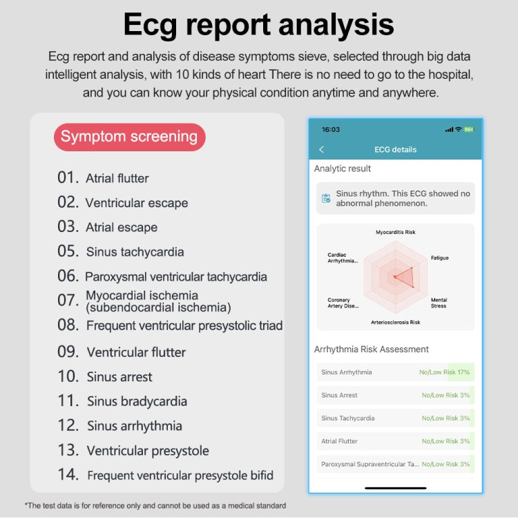 2. ECG monitoring: supports manual monitoring, lead ECG, ECG signal analysis and suggestions