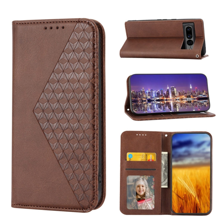 Cubic Grid Calf Texture Magnetic Closure Leather Phone Case, For Google Pixel 6a, For Google Pixel 7, For Google Pixel 7 Pro