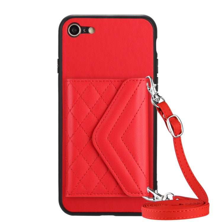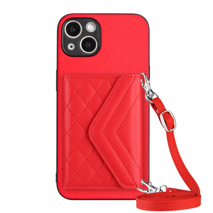 Rhombic Texture Card Bag RFID Phone Case with Long Lanyard