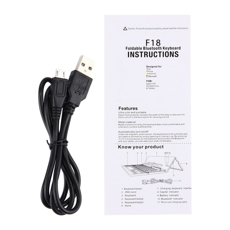 F18 Ultra-slim Rechargeable Foldable 58 Keys Bluetooth Wireless Keyboard with Holder
