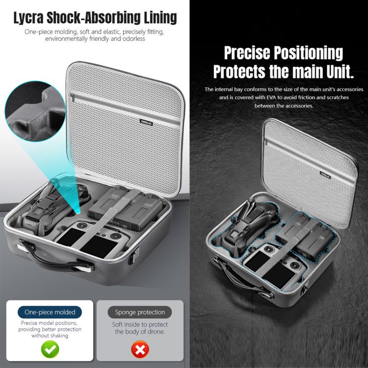 2. Made of high-quality PU fabric, the outer shell is pressure-resistant, wear-resistant, and splash-proof. The internal Lycra double-layer fabric and shock-absorbing lining precisely fit the body and accessories, effectively fix, prevent collision and friction, and are not afraid of extrusion, ensuring that your Mavic 4 Pro and related accessories are provided with lasting protection during transportation or storage;