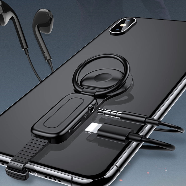 LXS08 8 Pin to 8 Pin + 3.5mm Audio Plug Ring Holder Fast Charging Adapter, 8 Pin + 3.5mm