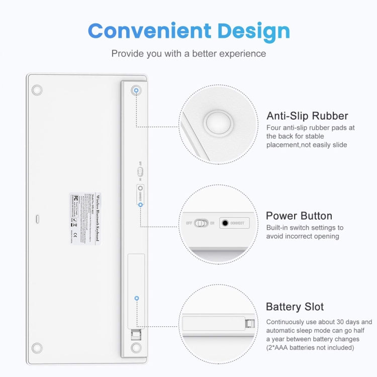 WB-8022 Ultra-thin Wireless Bluetooth Keyboard for iPad, Samsung, Huawei, Xiaomi, Tablet PCs or Smartphones, Russian Keys