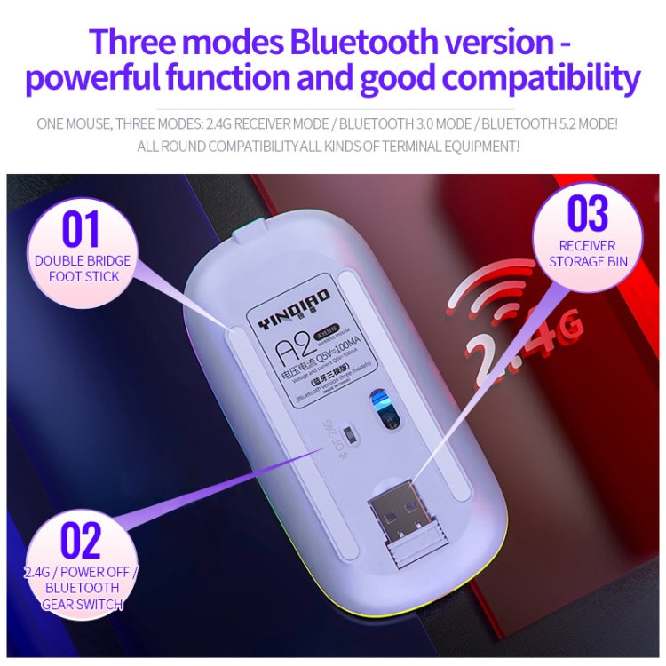 YINDIAO A2 BT3.0 + BT5.0 + 2.4GHz 1600DPI 3-modes Adjustable RGB Light Wireless Silent Bluetooth Mouse, Bluetooth ver.