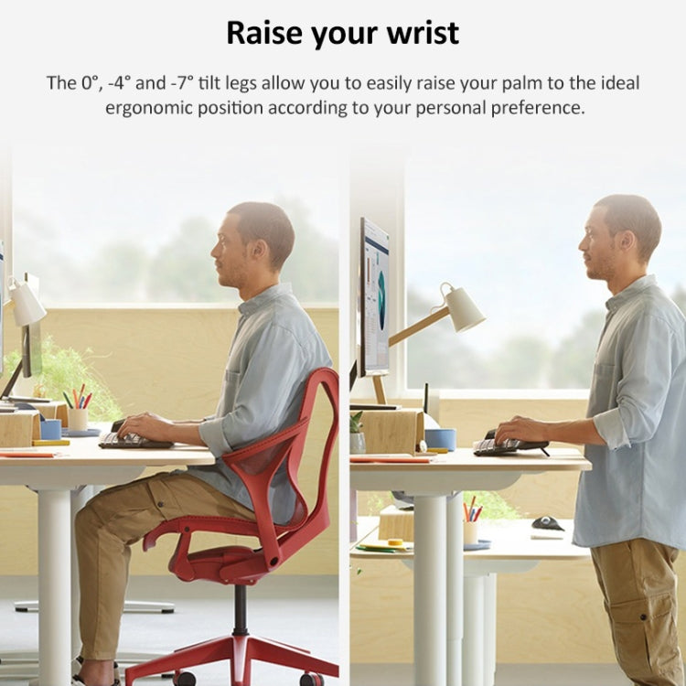 3. Innovative palm supporting function. The 0 degree, -4 degree and -7 degree tilting legs allow you to easily raise your palm to the ideal ergonomic position according to your personal preference.