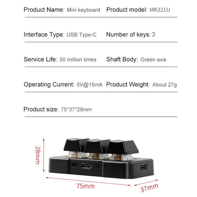 MK321BT Bluetooth 5.1 3 Keys Custom Keys Game Office PS Clip Macro Programming Keypad
