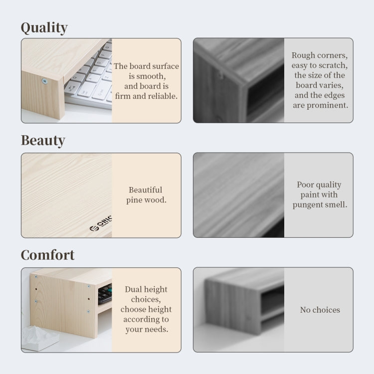 ORICO MSR-04-WD-BP 2-layer Wood Grain Computer Monitor Holder with Partition, Size: 50 x 20 x 13.5cm, 2-layer with Partition, Size: 50 x 20 x 13.5cm