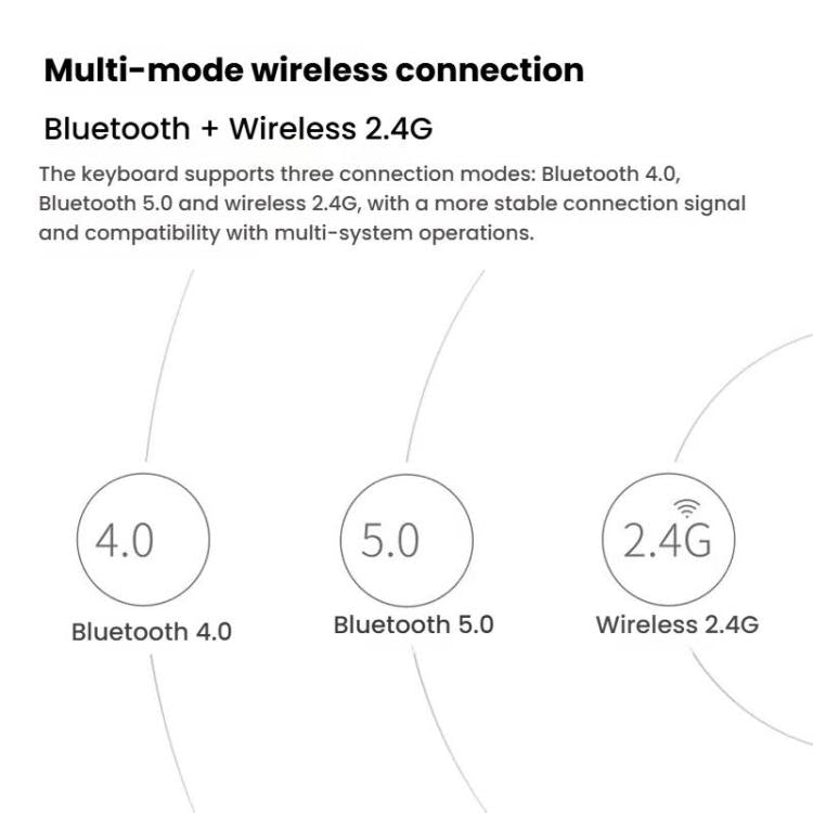 1. Supports three connection modes: Bluetooth 4.0, Bluetooth 5.0 and wireless 2.4G, more stable connection signal, compatible with multi-system operation