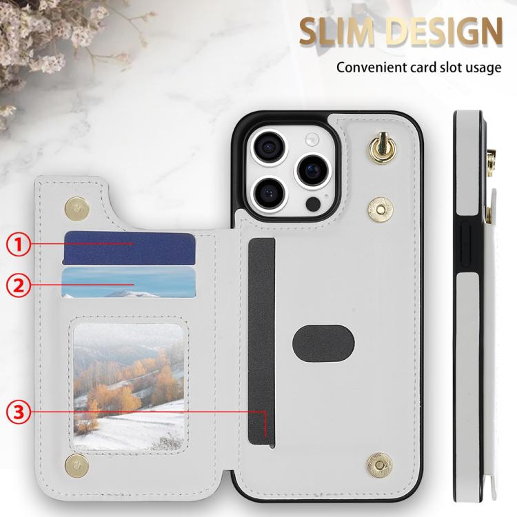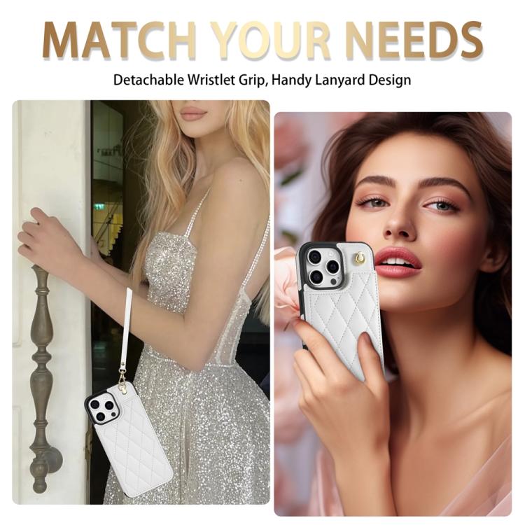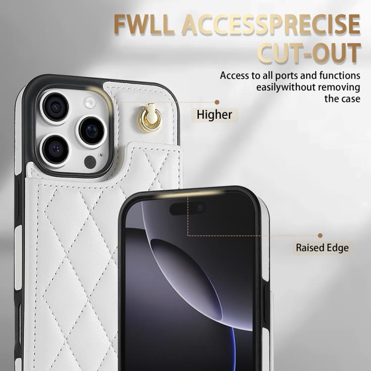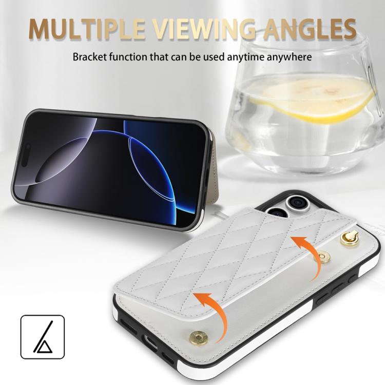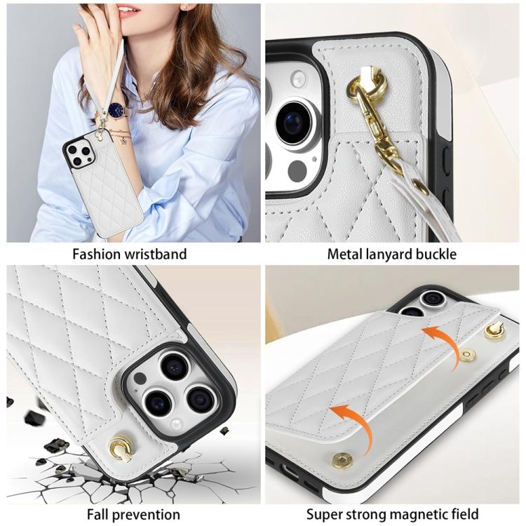 Rhombic Dual Buckle Card Slots Phone Case with Lanyard, For iPhone 15 Pro Max, For iPhone 15 Pro, For iPhone 15 Plus, For iPhone 15