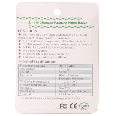 2 PCS UTP Network Video Balun CAT5 to Camera CCTV BNC DVR O-611, 206A