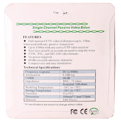 2 PCS Passive UTP Network Video Balun CAT5 to Camera CCTV BNC DVR O-612, 206C