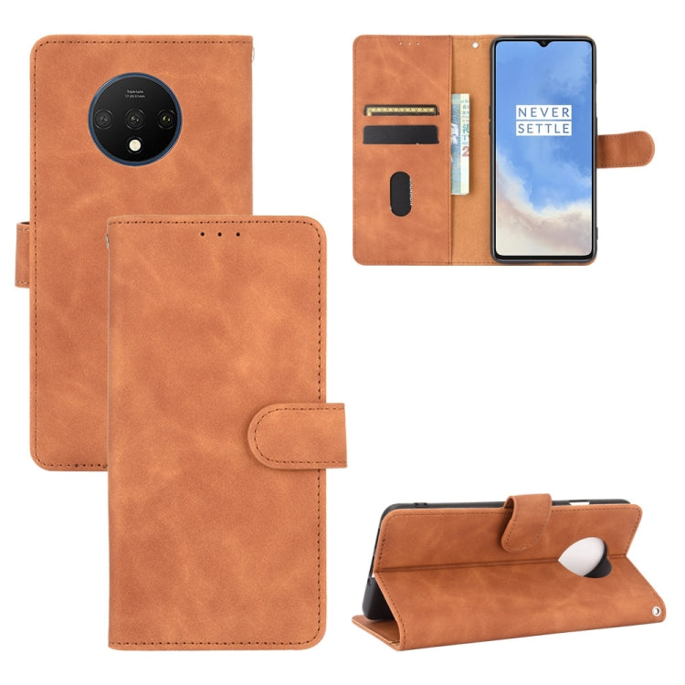 Solid Color Skin Feel Magnetic Buckle Horizontal Flip Calf Texture PU Leather Case with Holder & Card Slots & Wallet, For OnePlus 7T