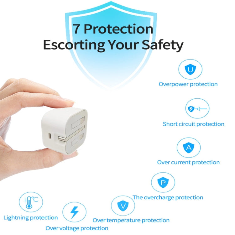 A2344 20W PD 3.0 Type-C / USB-C Folding Travel Charger + USB-C / Type-C to 8 Pin Fast Charging Data Cable Set, UK Plug, Length: 2m, 20W 8 Pin Length: 2m