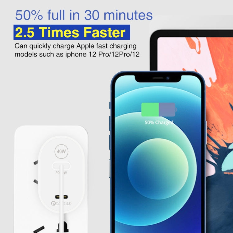 002 40W Dual Port PD / Type-C Fast Charger with USB-C to 8 Pin Data Cable, UK Plug, UK Plug + Type-C to 8 Pin Cable