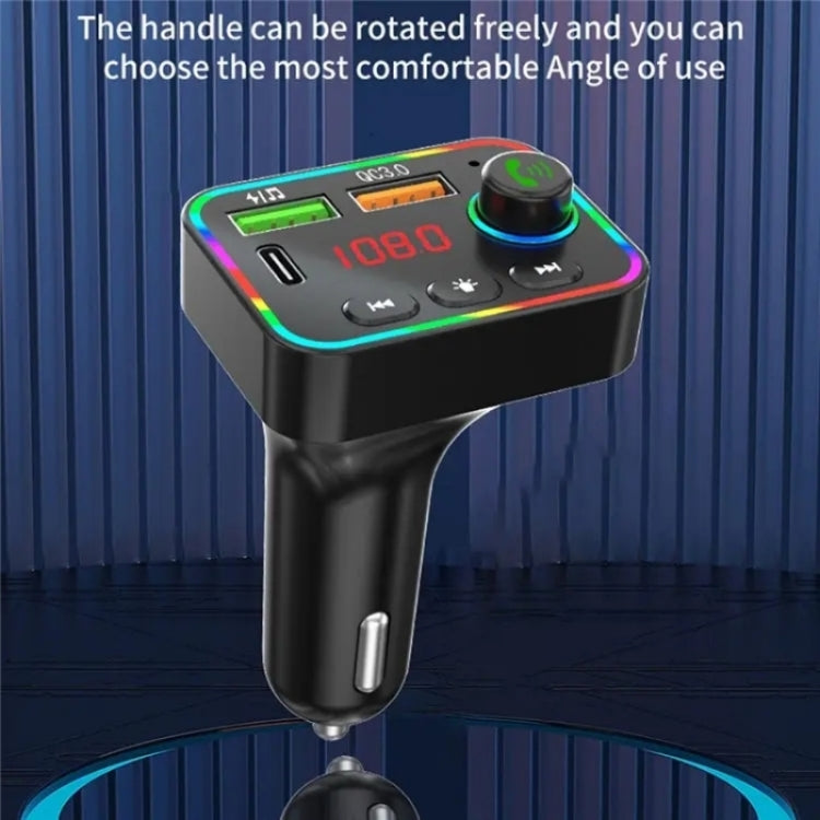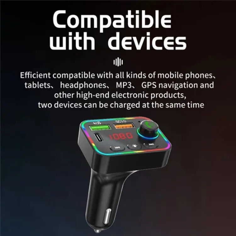PDF4 PD 25W Fast Car Charger with Hands-Free Calls FM Transmitter 7-Color Led Lights MP3 Player, PDF4