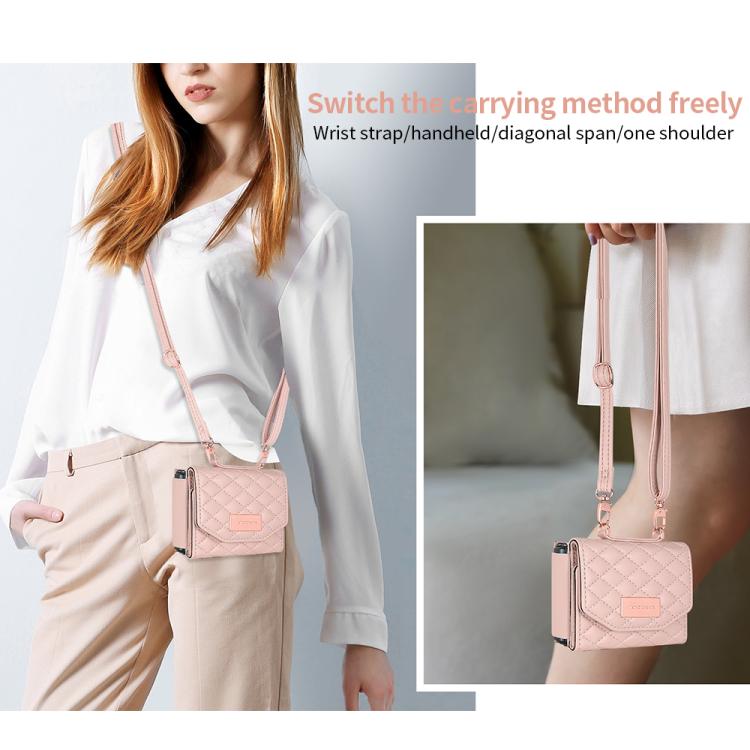 VIETAO Rhombic Texture Wallet PU Phone Case with Long Lanyard