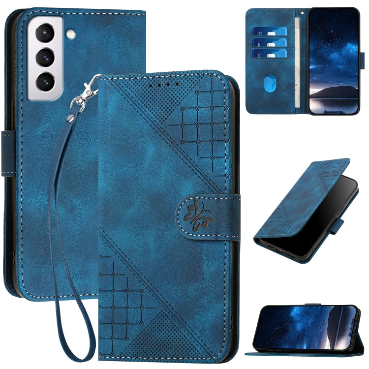 YX0080 Grid Butterfly Embossed Pattern Flip Leather Phone Case with Lanyard